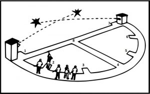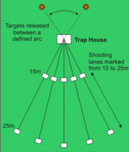Down the line, this is with targets going away from you and full use of the gun ( both barrels one at a time ) you shoot 5 targets before you move to the next base and so on.